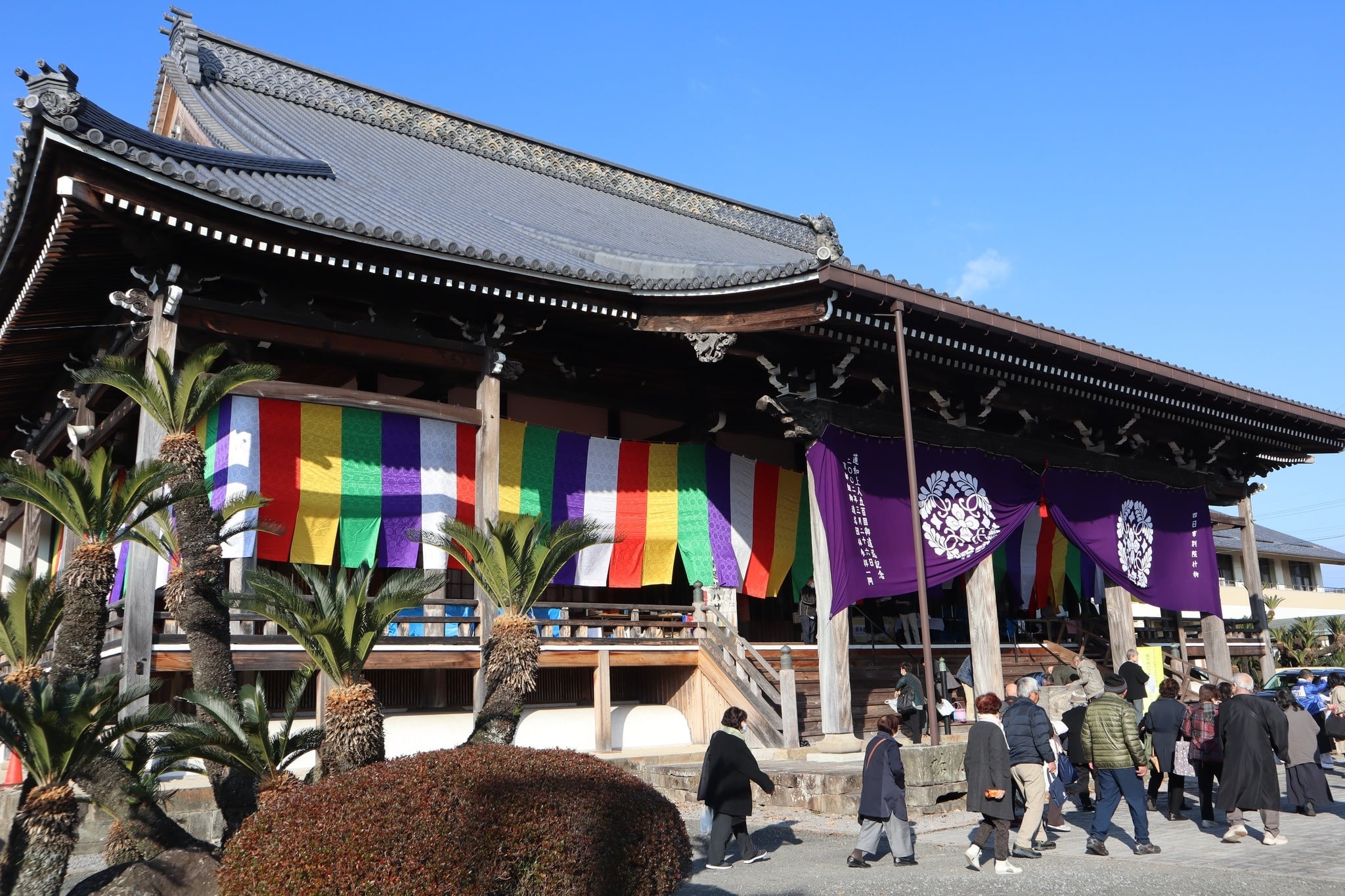 2025年12月14日(日)。本日四日市別院にて報恩講二日目が勤まりました。日中は、宇佐組大分別府組より115名以上の団体参拝の方が来られました。今年法話に登壇なされた四衢亮先生は、報恩講の歴史をお話しされました。親鸞聖人ご入滅の後、親鸞聖人と直接にお会いする機会に恵まれなかった覚如上人は、親鸞聖人の孫の如信上人等先達らの記憶を頼りに『報恩講私記』を著し、法要の次第を調えられました。これが現在の報恩講の原型となったということなどを語られました。